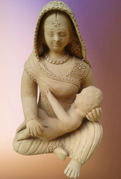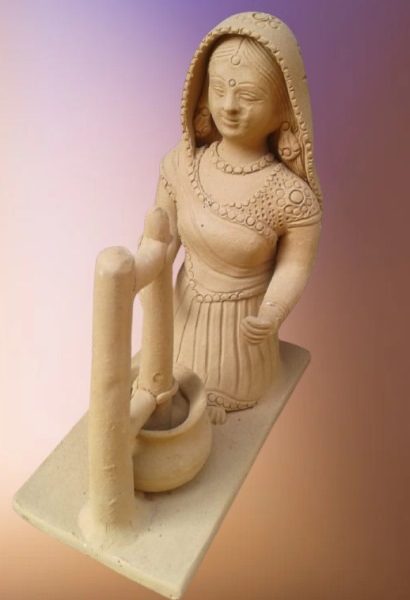 Handcrafted Terracotta Village Woman Grinding Stone Statue