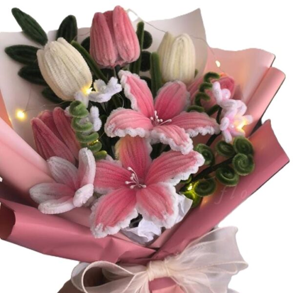 Handmade Pipe Cleaners Flower Bouquet with LED Lights