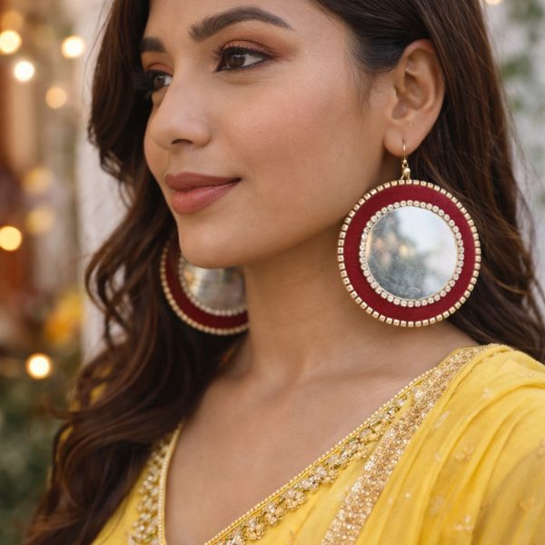 Red Mirror Earing Handmade