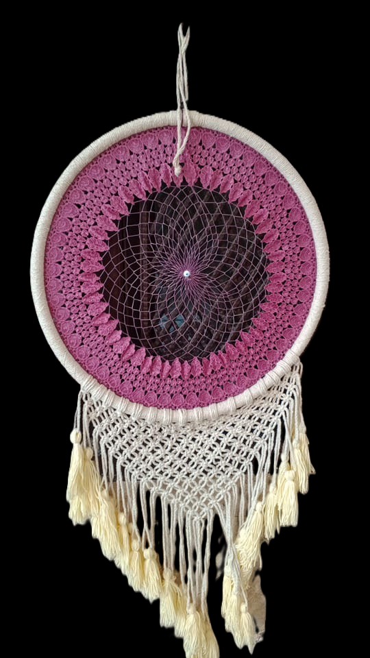 This Dark Pink Dream Catcher is beautifully handcrafted using premium cotton thread and a sturdy circular ring.