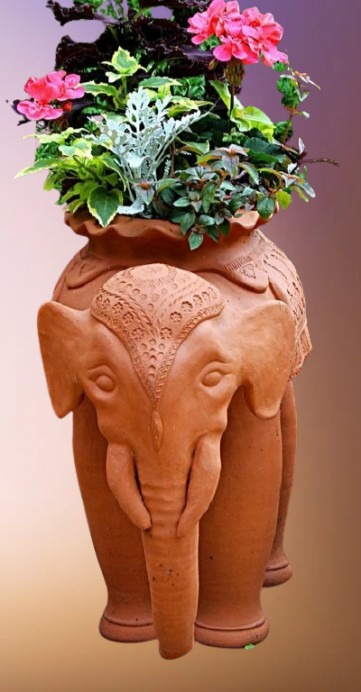 Enhance your decor with this beautifully crafted Hathi Gamla. Designed in an elegant elephant shape, this decorative planter brings traditional charm, positivity, and natural beauty to any indoor or outdoor space.