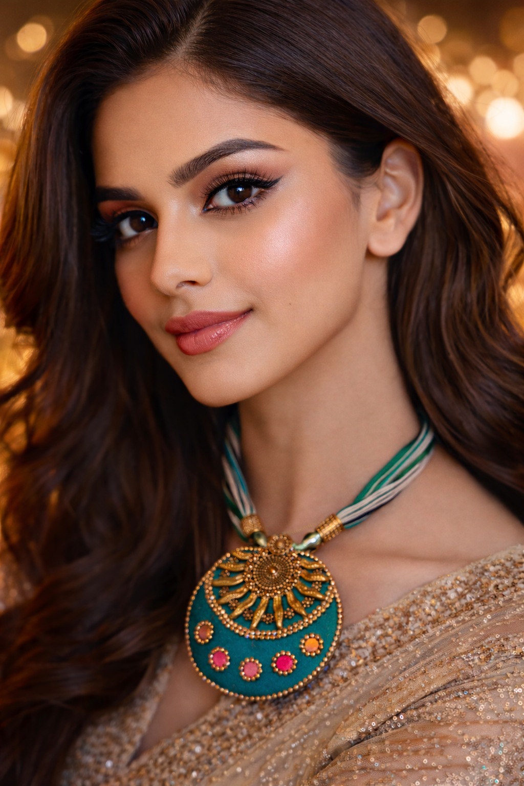 The locket is paired with a stylish multi-thread necklace, making it lightweight yet impactful. Ideal for women who love bold, handcrafted jewelry, this piece complements sarees, lehengas, and ethnic dresses effortlessly.