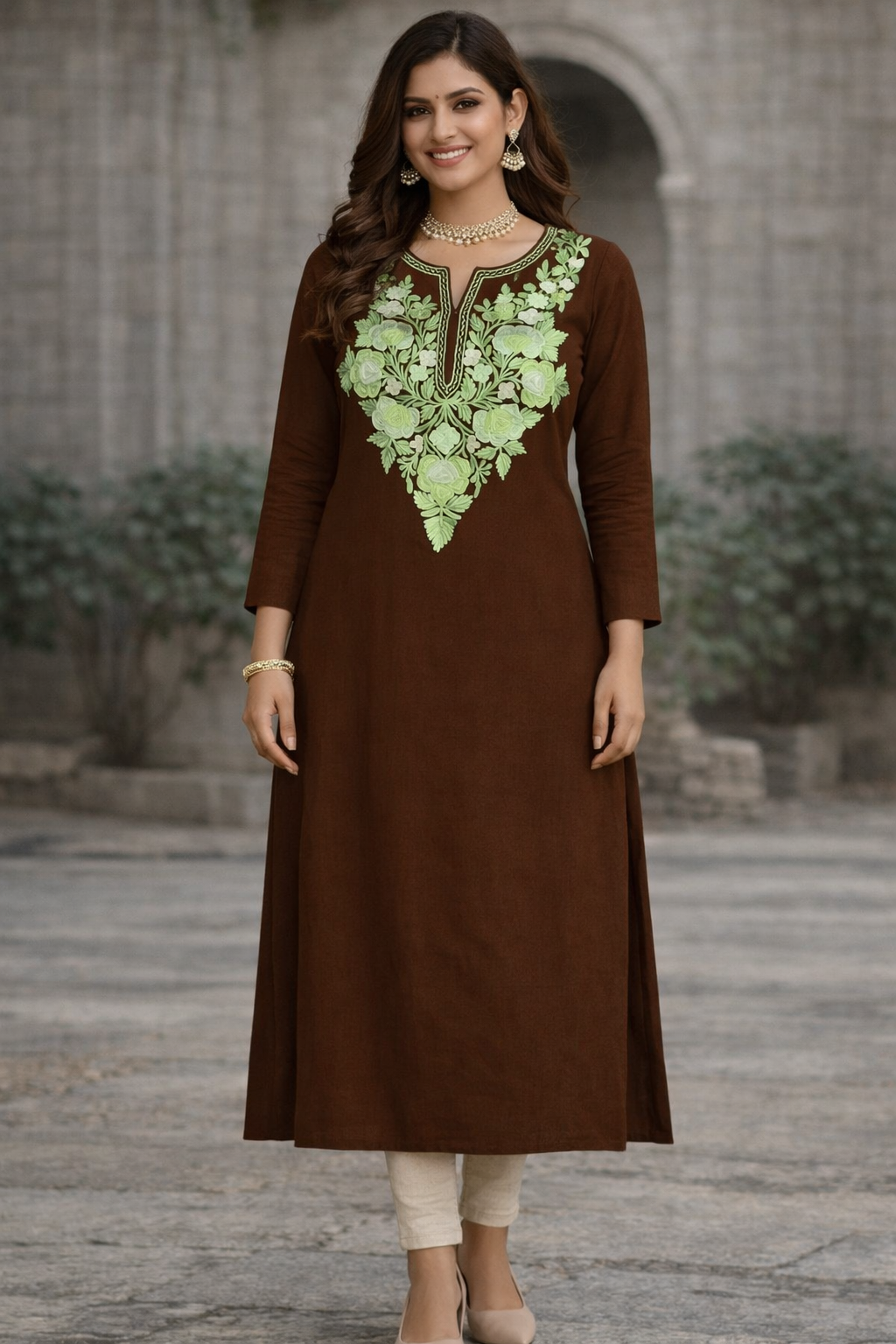 Aari Embroidered Pheran Discover the beauty of Kashmir with Aari Embroidered Pheran, a timeless classic that continues to be a Best Seller.