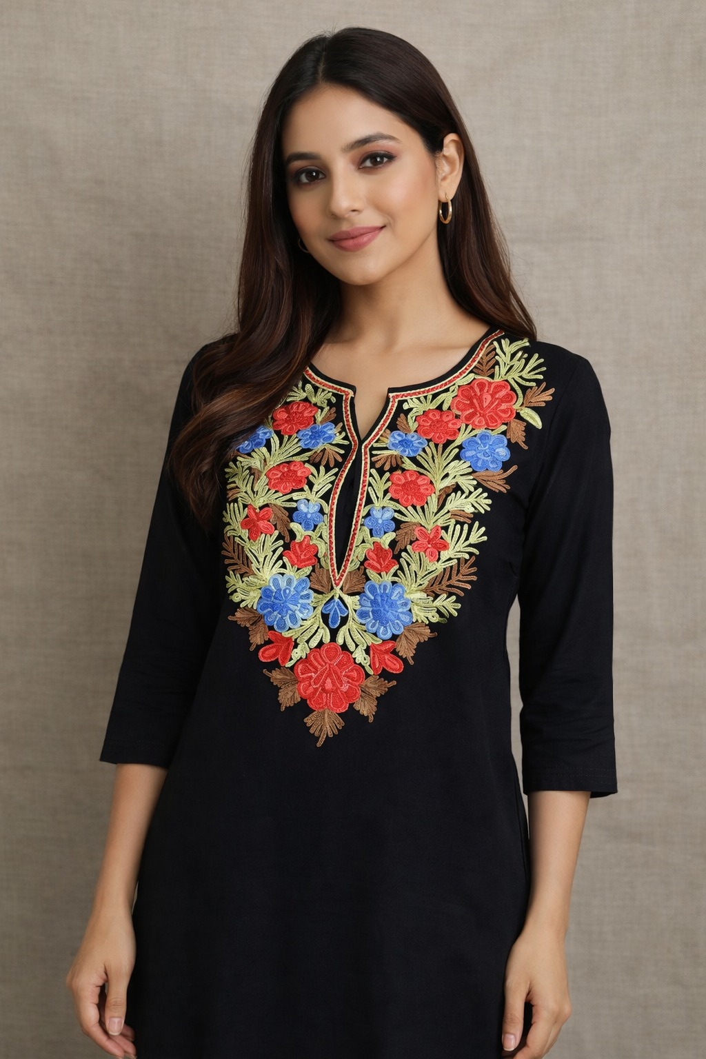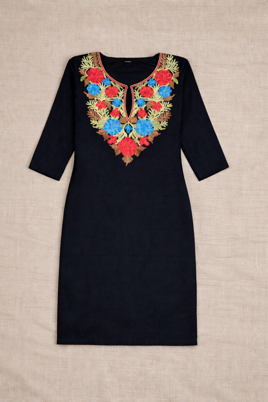 HomeUncategorized Mukhtalif Aari Embroidered Kashmiri Pheran Kurti(Black)