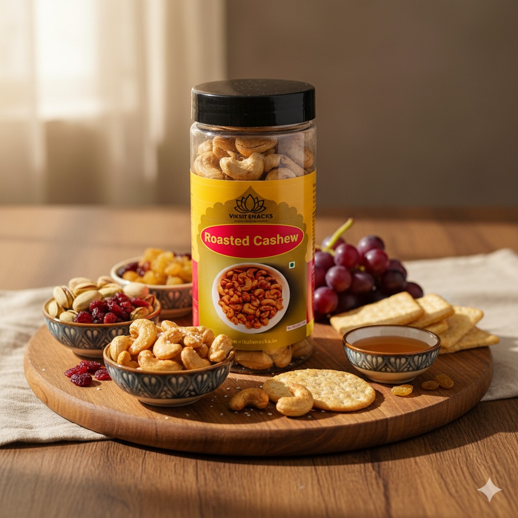 Enjoy the rich taste and crunchy texture of premium roasted cashews by Viksit Snacks. Hygienically processed, perfectly roasted, and packed to preserve freshness, these cashews are ideal for snacking, gifting, desserts, cooking, and festive celebrations.