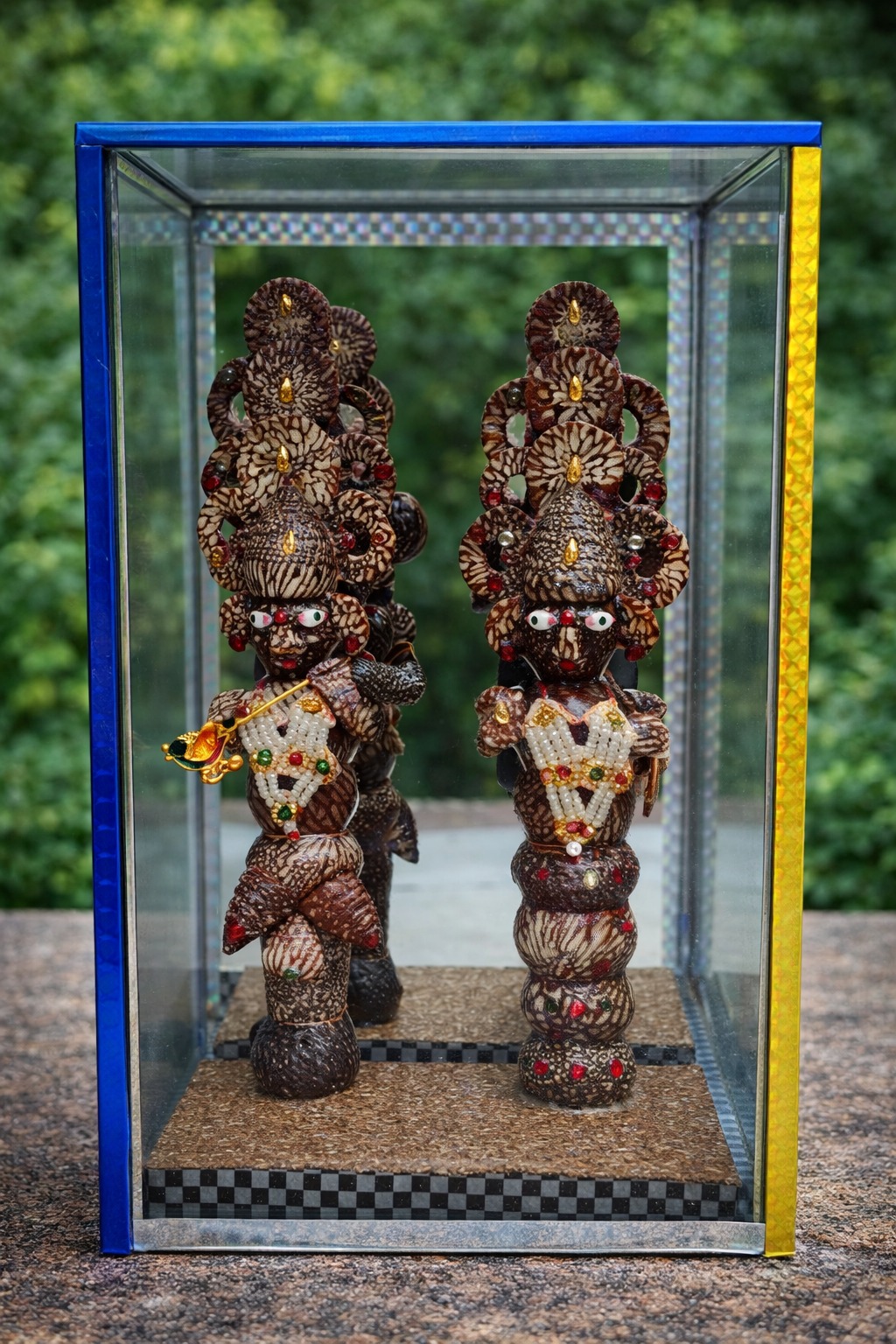 A divine handcrafted Radha–Krishna idol set made from natural Supadi (Areca Nut), symbolizing eternal love, devotion, and harmony. Perfect for home mandir, spiritual decor, and auspicious gifting.