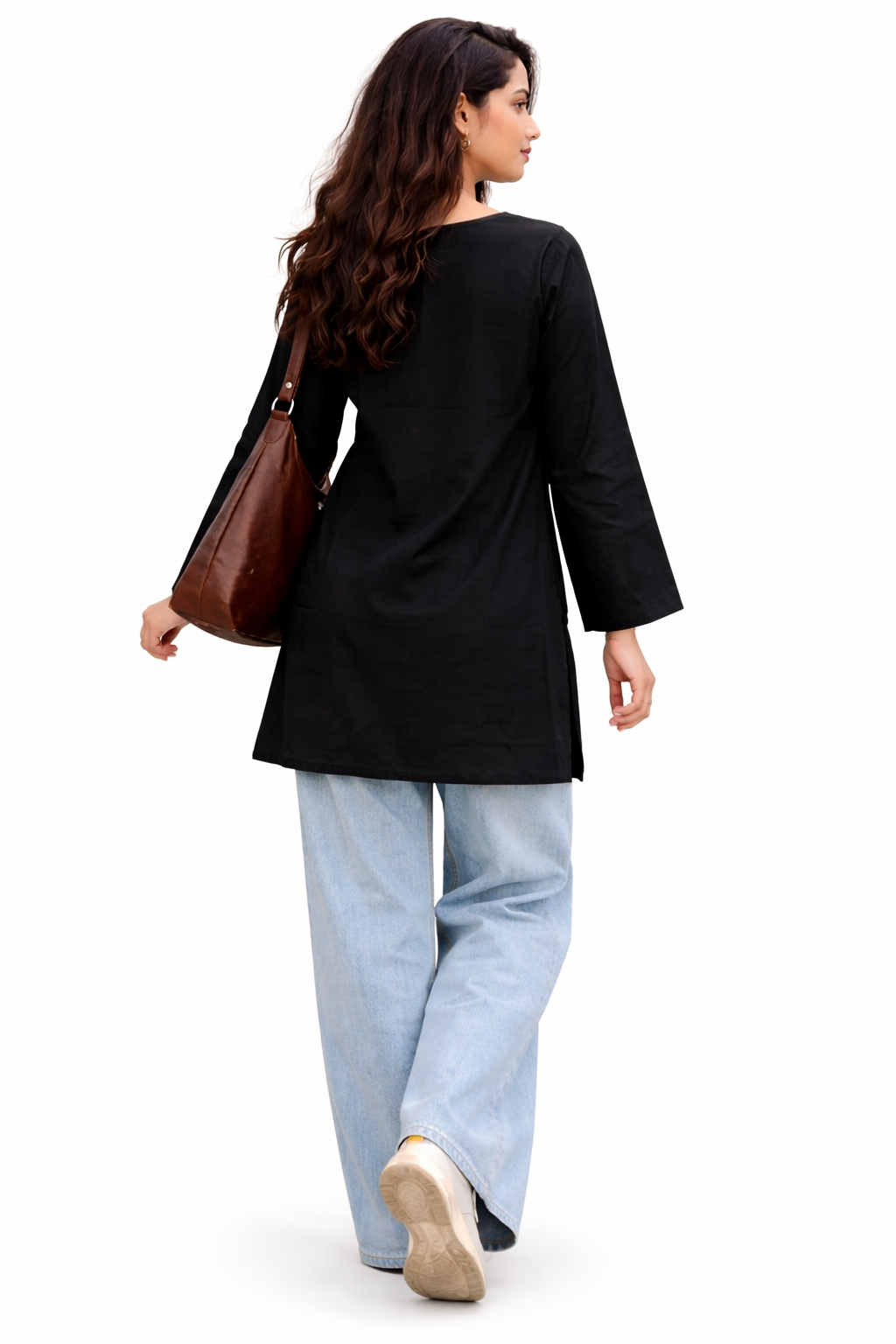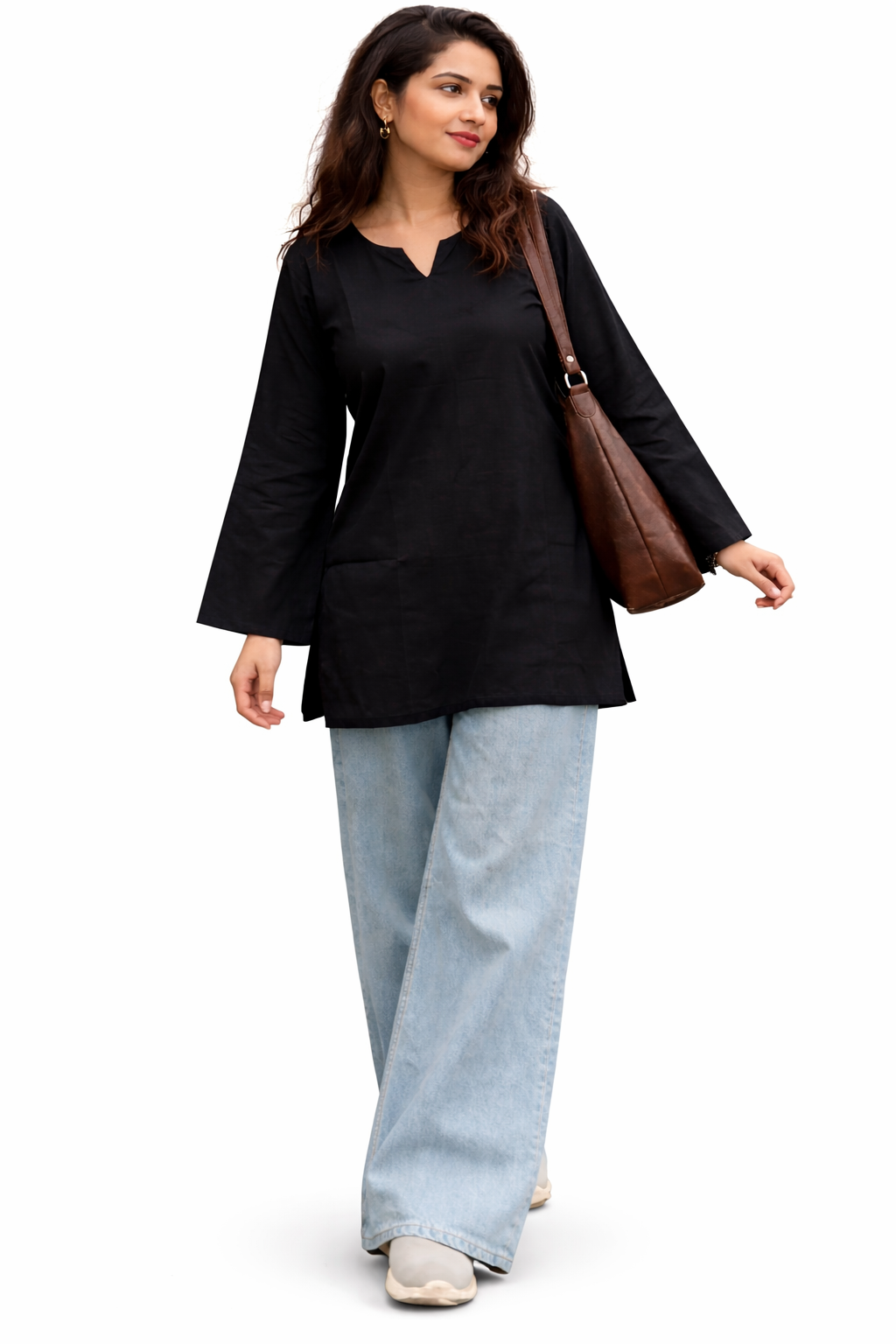 HomeUncategorized Solid Cotton Kurti – Bottle Black
