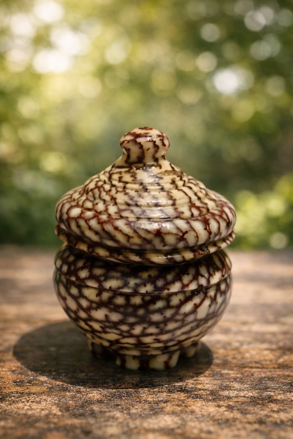 The natural marbled texture and earthy tones make every piece unique. Lightweight yet sturdy, this eco-friendly sindoor box is perfect for daily worship, festive rituals, wedding ceremonies, and gifting purposes. A graceful blend of tradition, sustainability, and craftsmanship.