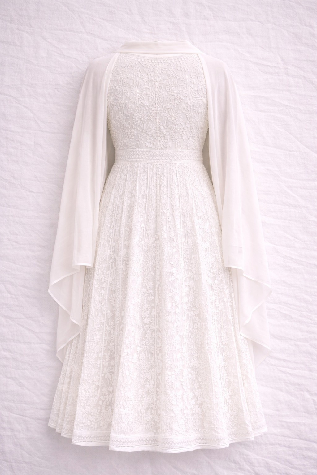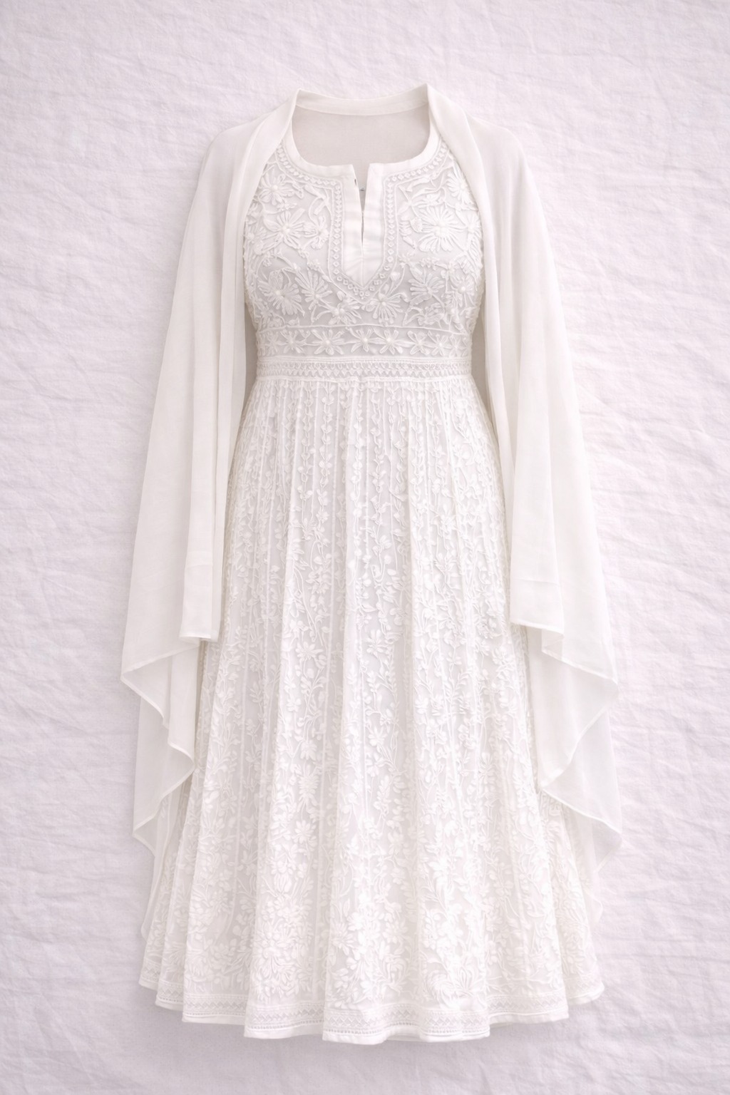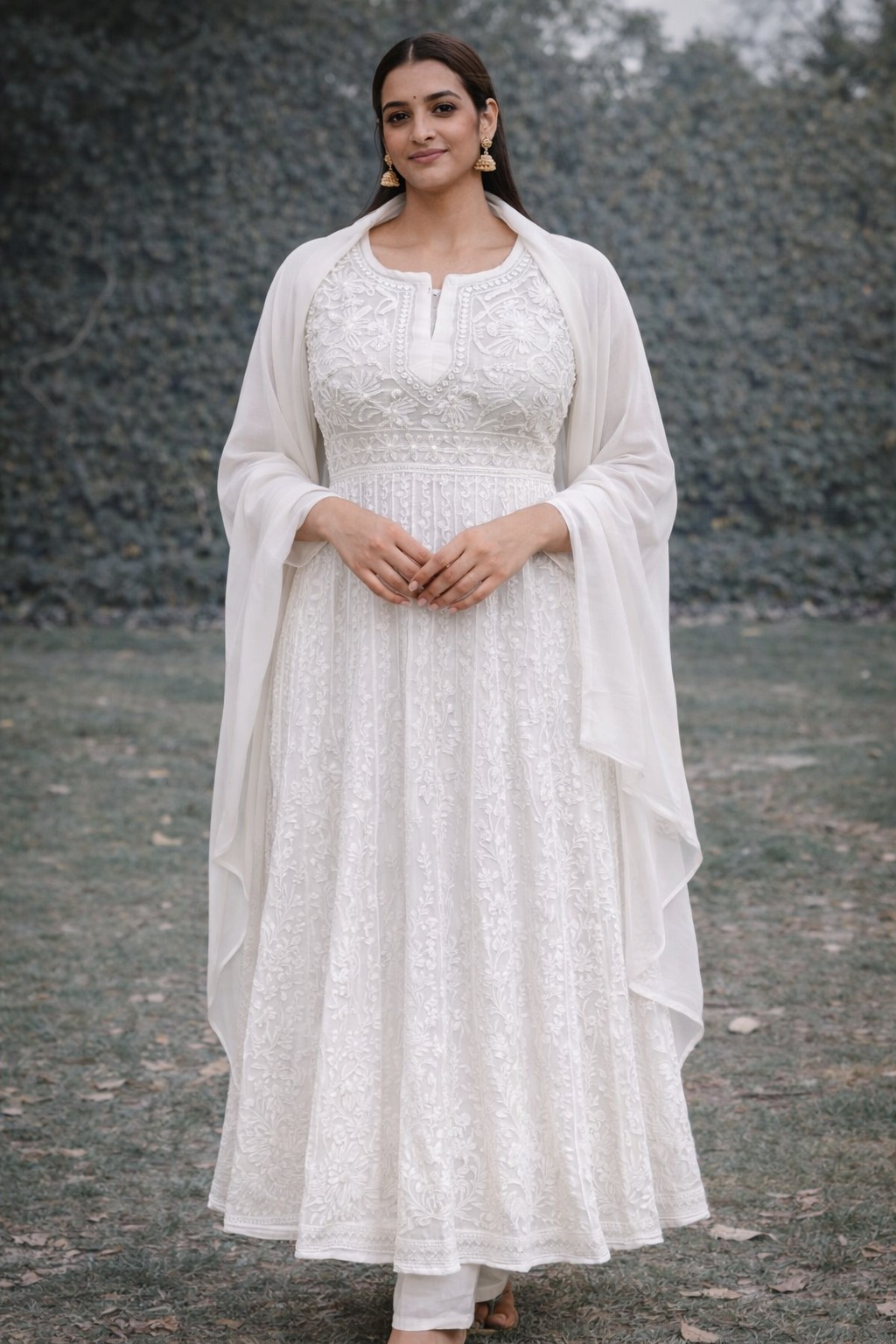 White Chikankari Anarkali Suit with Dupatta