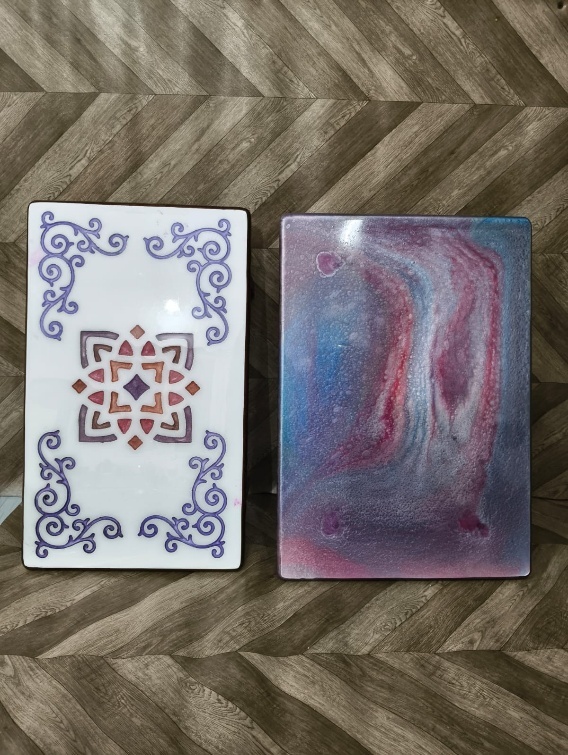 This a unique artefact made by pure wood, beautiful design with resin coating. Resin coating makes it waterproof, oil and scratch free, no maintenance needed, can be cleaned easily, highly durable- best for pooja sitting, marriage and for gifting purpose.